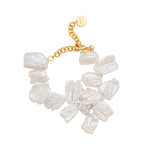 EXUDE ELEGANCE IN THE CLEMENCE BRACELET. FEATURING A STRAND OF IRREGULAR FRESHWATER PEARLS AND 24K GOLD PLATED CLASP, THIS STYLE IS PERFECT FOR ADDING AN ACCENT OF LUXURY TO EVERY ENSEMBLE.