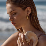 The Whitsundays Earrings feature a striking and curvy wave-like silhouette. These modern hoops will certainly add luxury to your everyday edit. Wear yours with the matching Whitsundays Bracelet. Handcrafted in Italy.