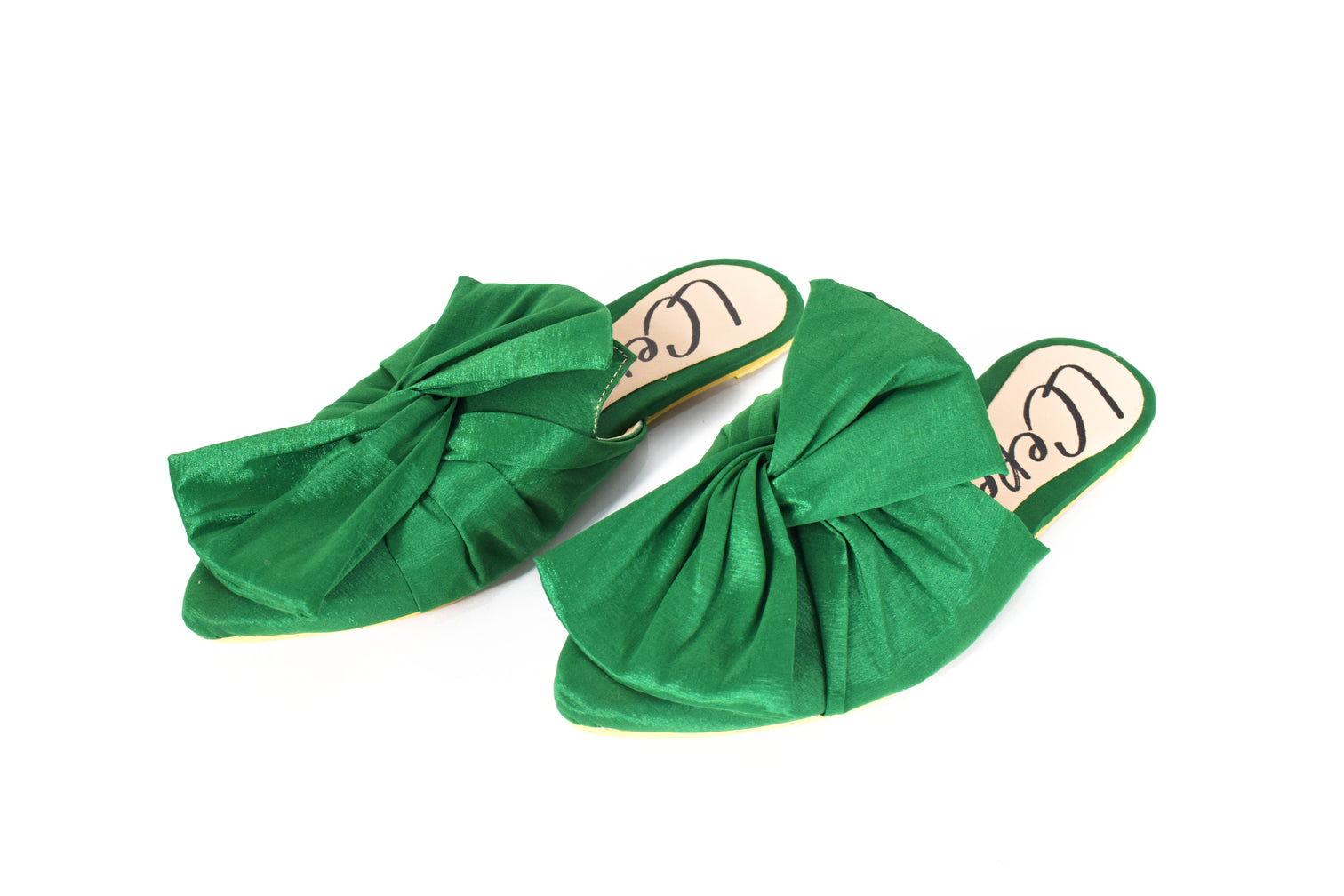 An easy going but stunning mule with an oversized bow in a gorgeous emerald. They ooze style and sophistication.