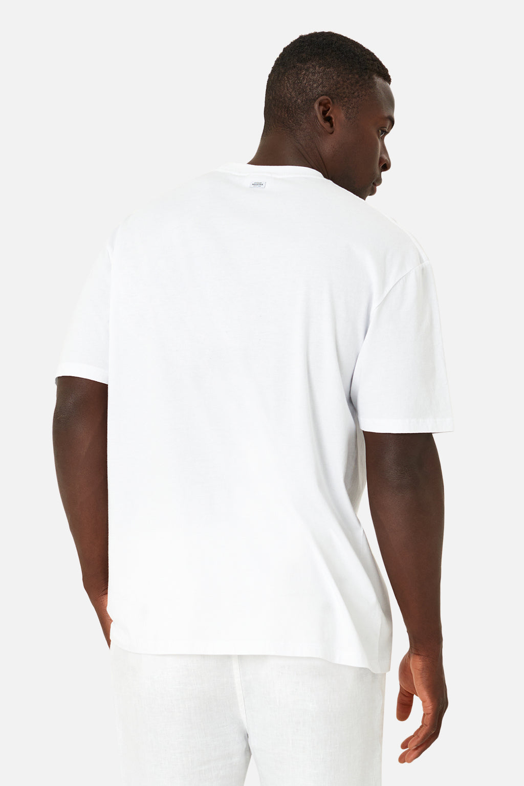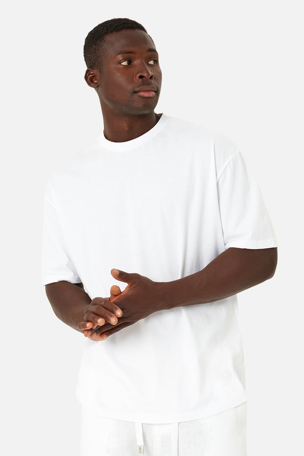 The Del Sur Tee - White is a relaxed, oversized, light weight 100% cotton tee is perfect for achieving an urban casual look or stylishly dressed up with slacks.
