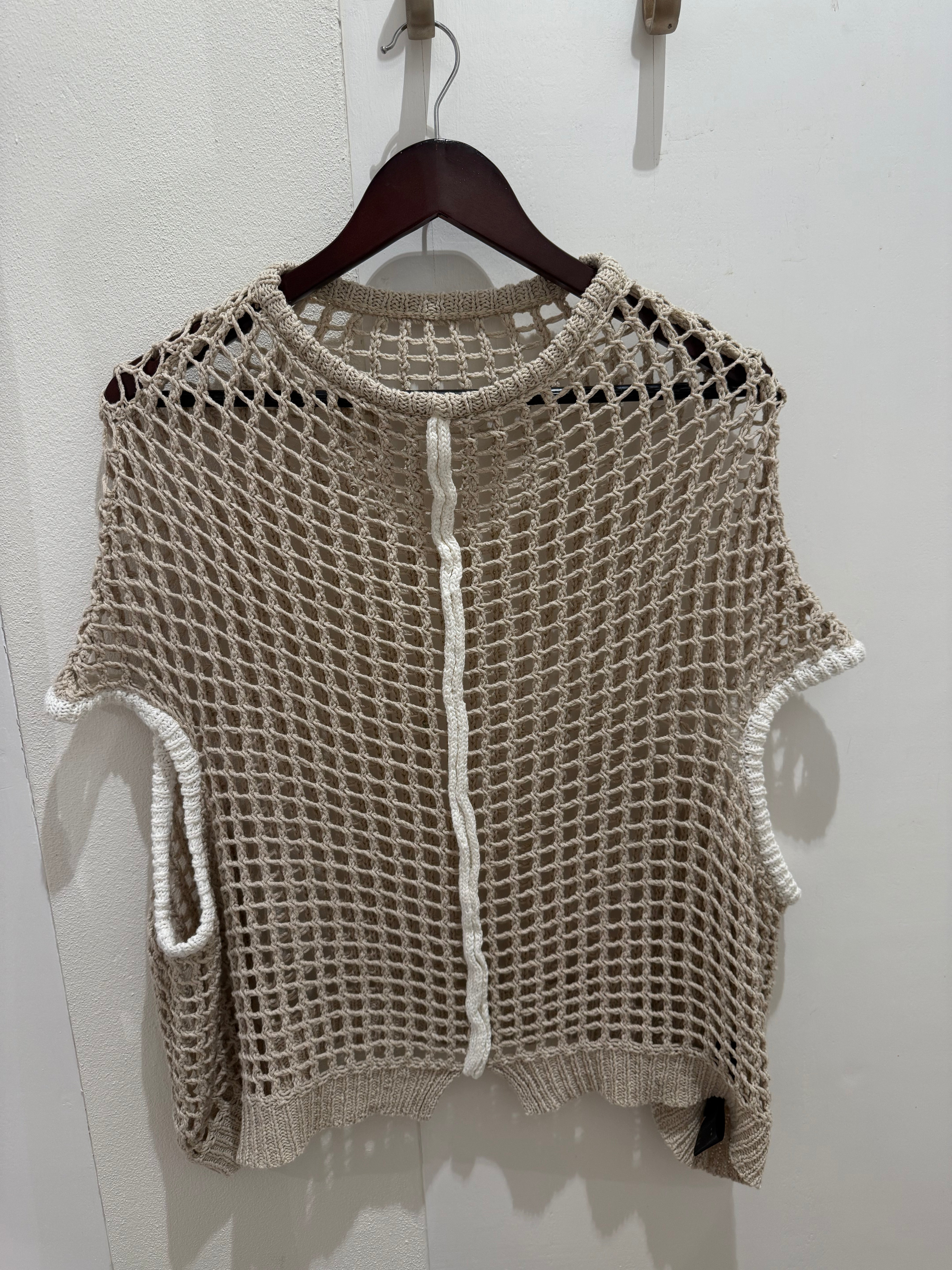 Crafted in Japan, the Open Weave Contrast Knit Top embodies Moyuru’s minimalist artistry — understated, tactile, and effortlessly modern.