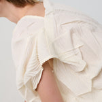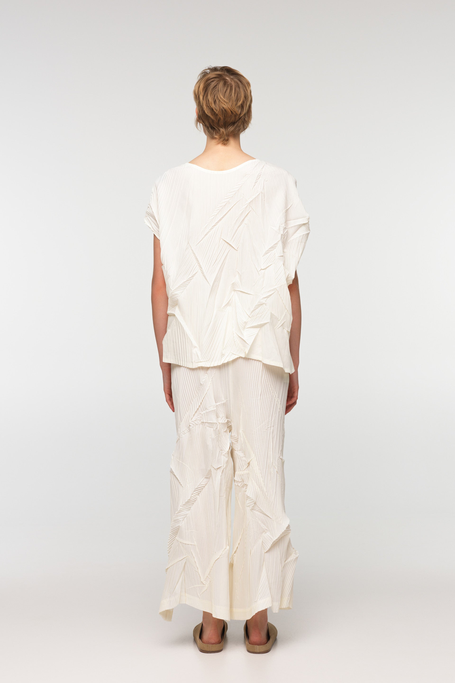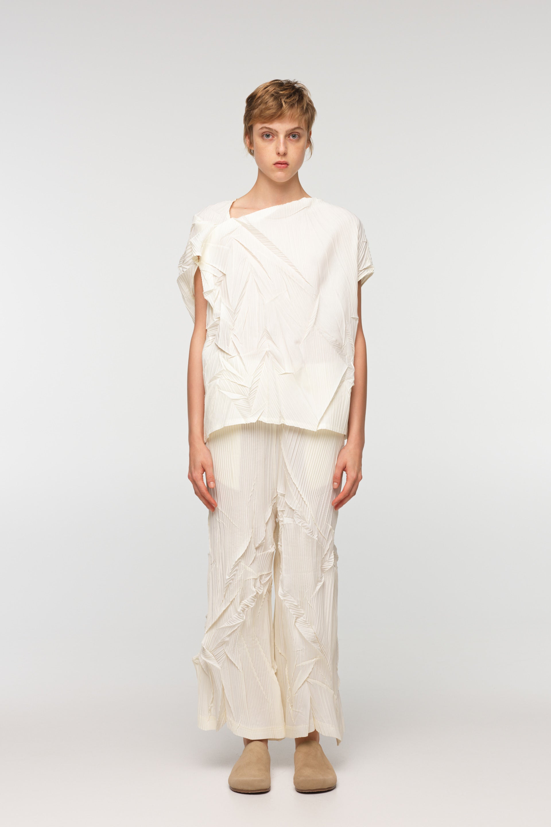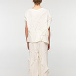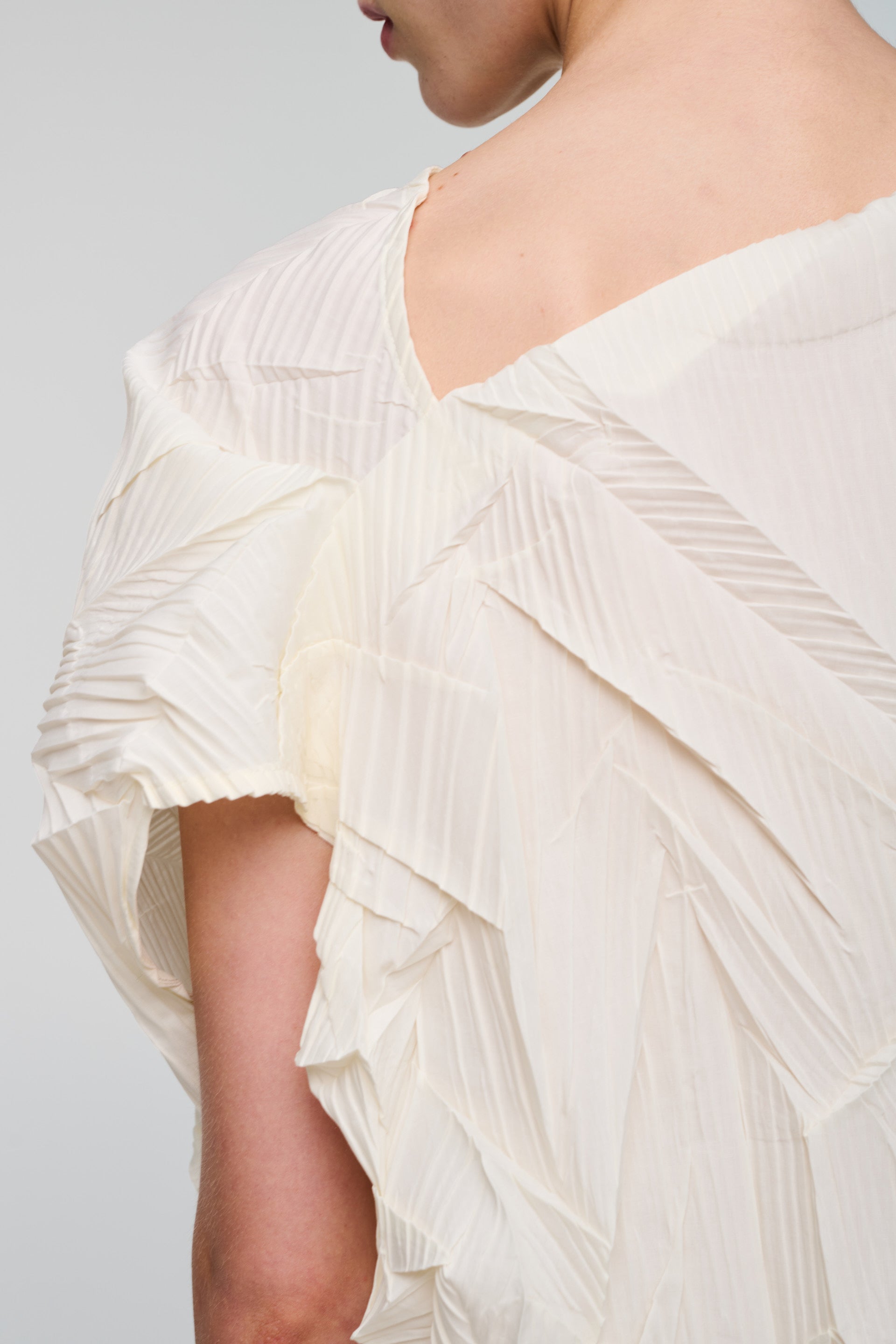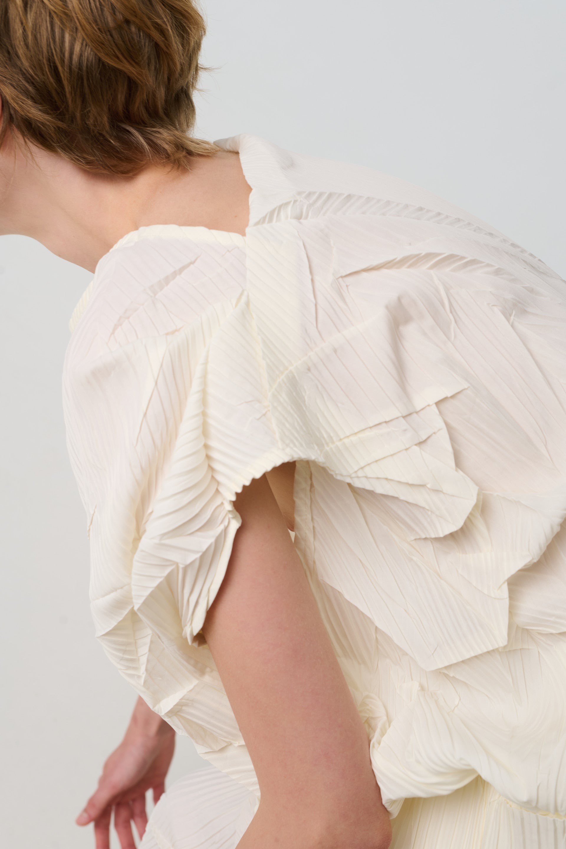 As light and textural as its name suggests, the Azúcar Top is a sculptural staple designed for those who favour a quietly daring silhouette. Crafted from pleated, crinkled fabric with tactile dimension, it features a relaxed fit and an artful neckline—V-shaped on one side, rounded on the other—allowing it to be worn front-to-back or back-to-front.