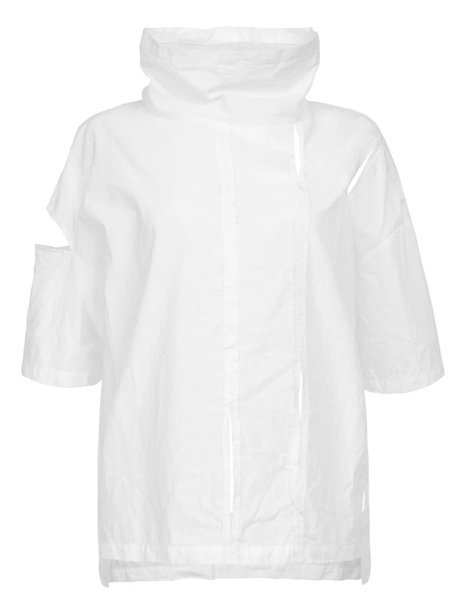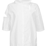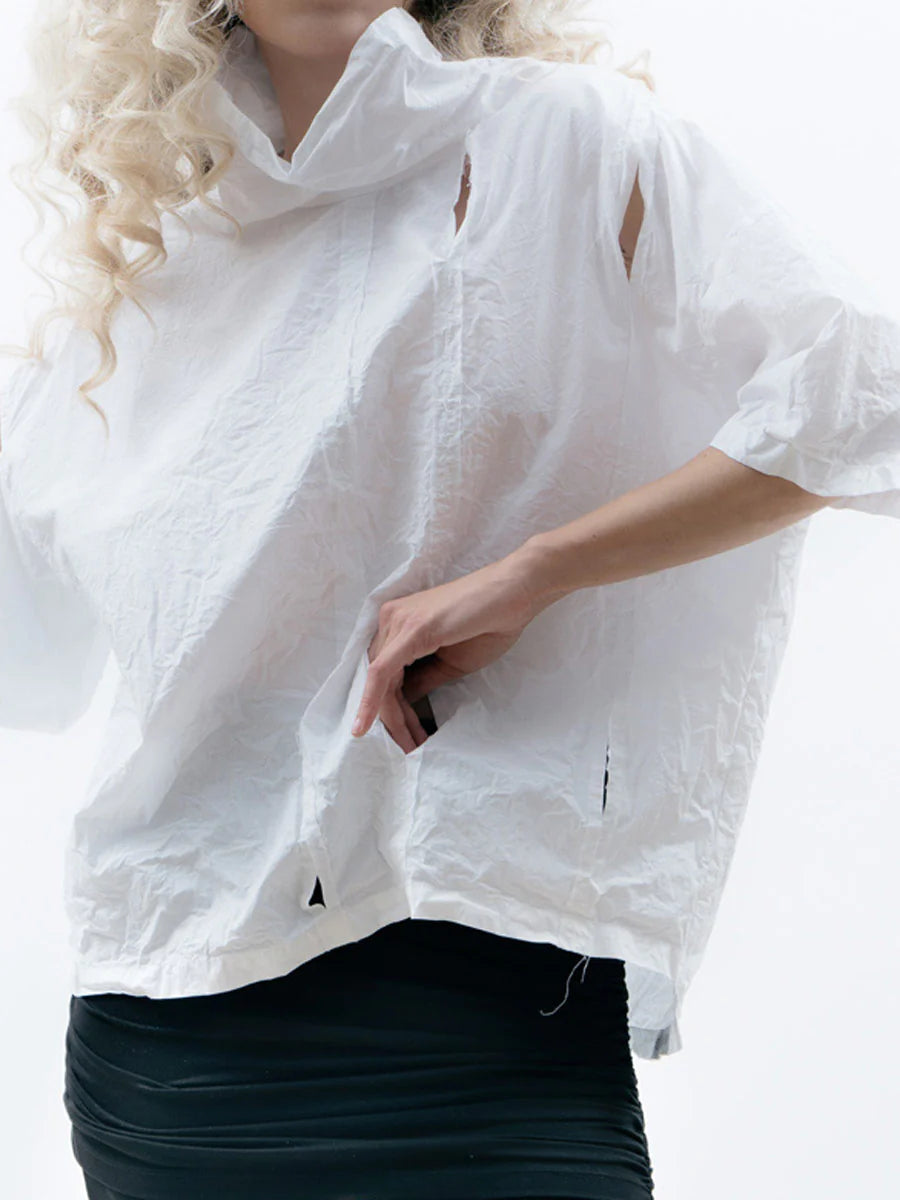 The PUSA Top in White is the ultimate balance of ease and structure. With its oversized yet cropped fit, this piece delivers a fresh, modern feel, perfect for layering or wearing solo. Pair it with a high-waisted skirt or relaxed trousers for an effortlessly chic look.