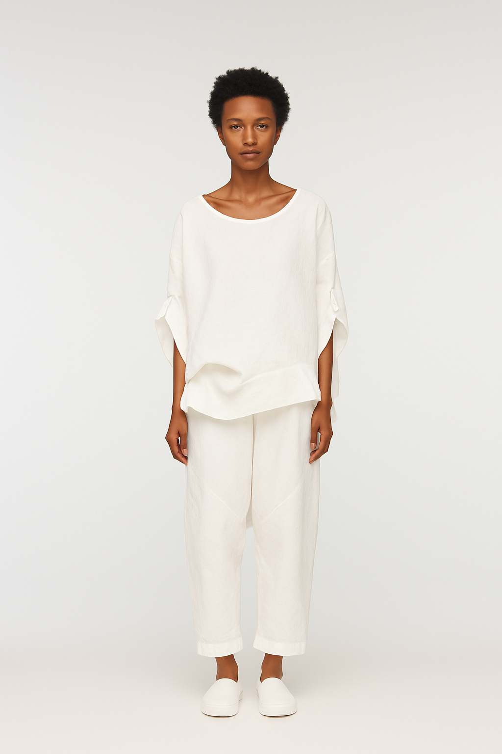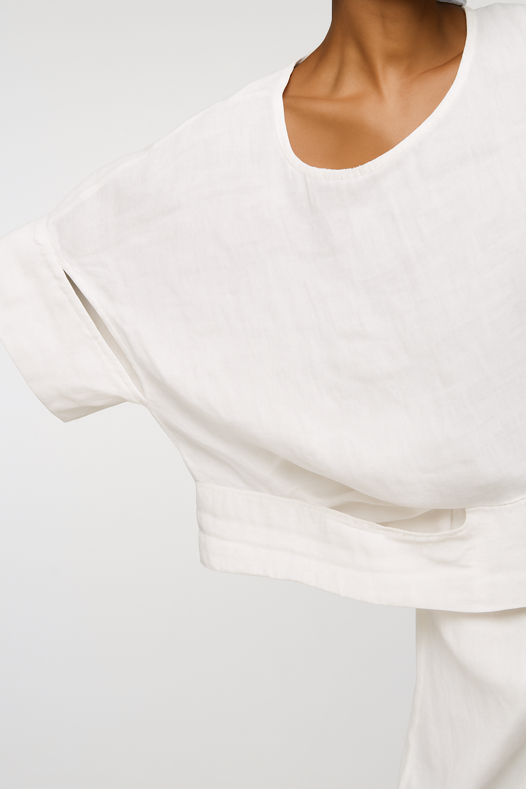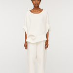 Breezy, sculptural, and quietly bold — the Mar Top is cut from soft, breathable ramie and dyed by hand using a cold-dyeing technique that ensures no two are ever quite the same. Its relaxed silhouette, scooped neckline, and short sleeves make it a warm-weather essential, while raw-edged slits at the hem add a touch of textural play.