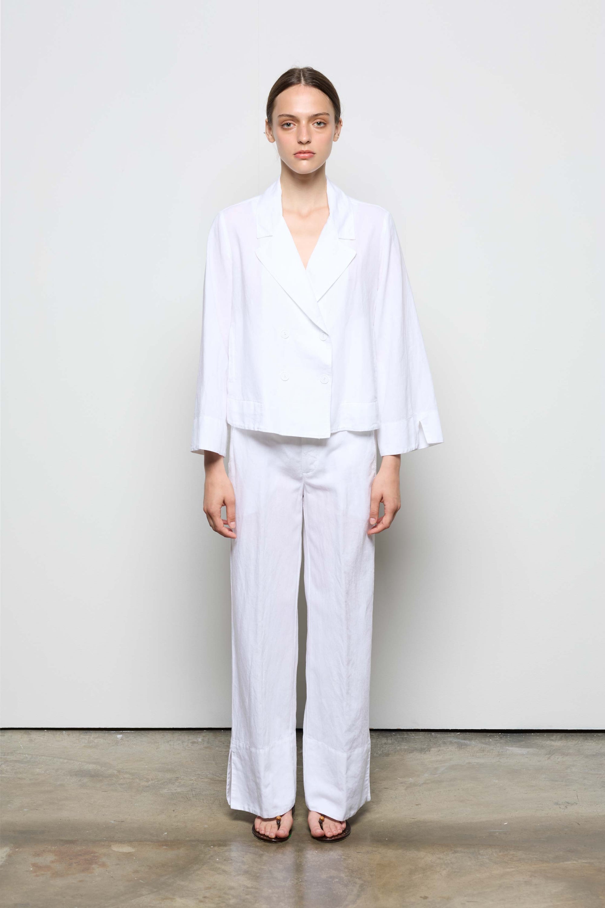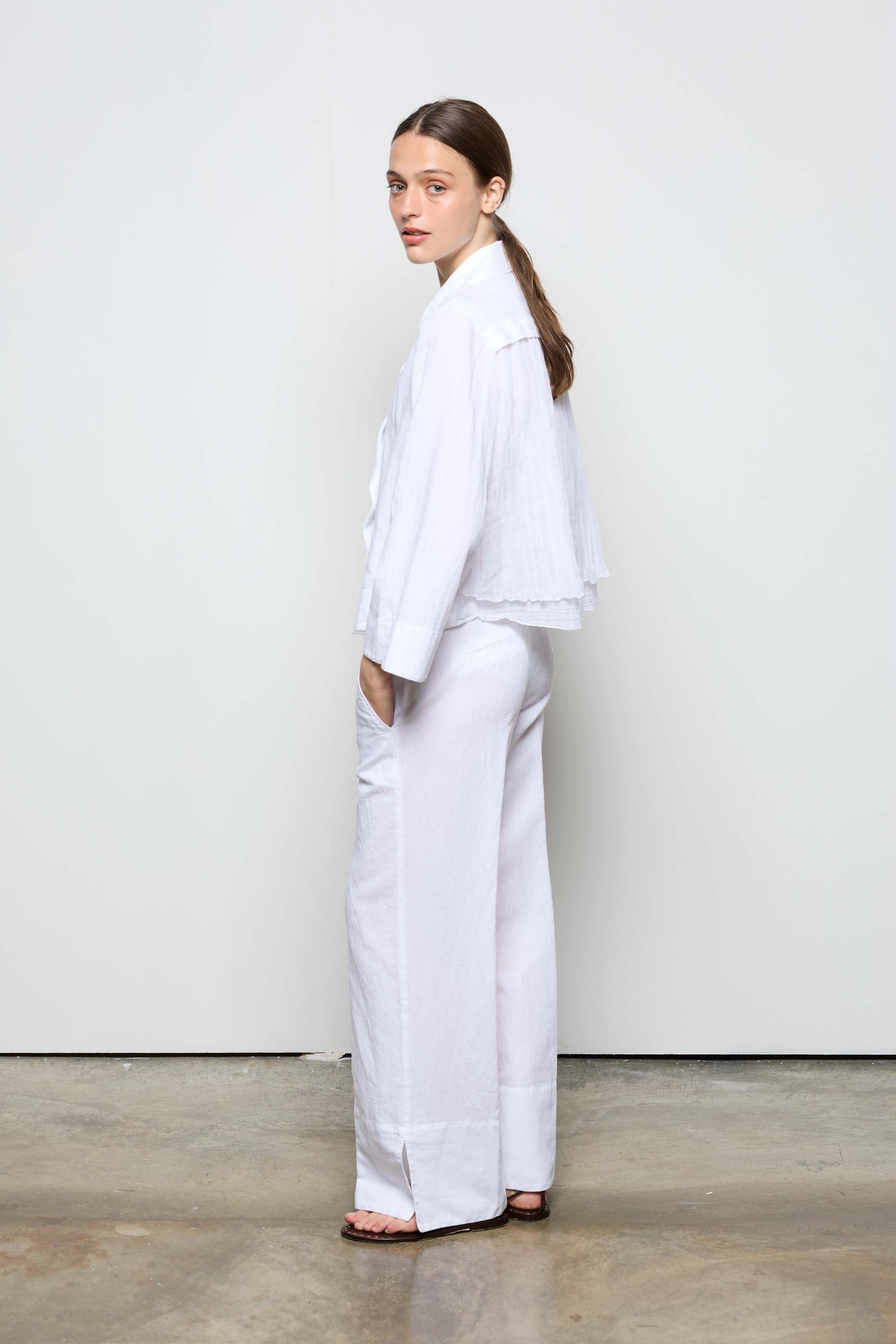 Relaxed refinement, redefined. The Pantalone Donna Trousers are a modern wardrobe staple — cut from a breathable cotton-linen blend with a clean straight-leg silhouette and subtle side slits at the hem for a hint of movement.