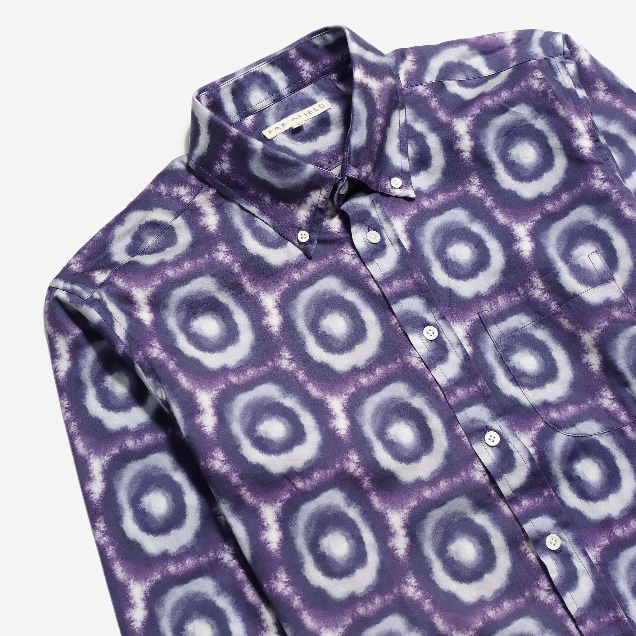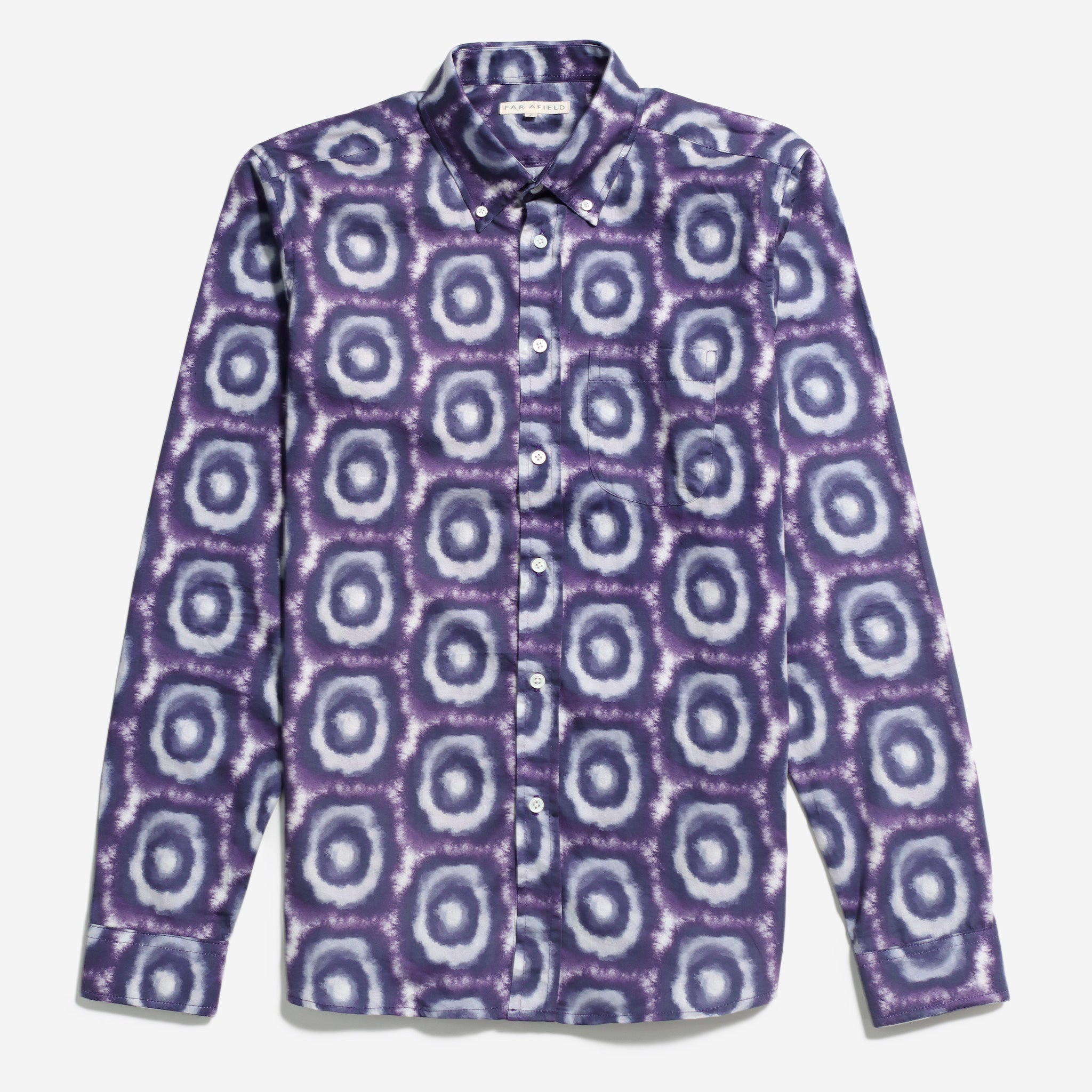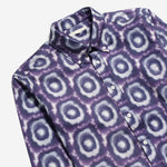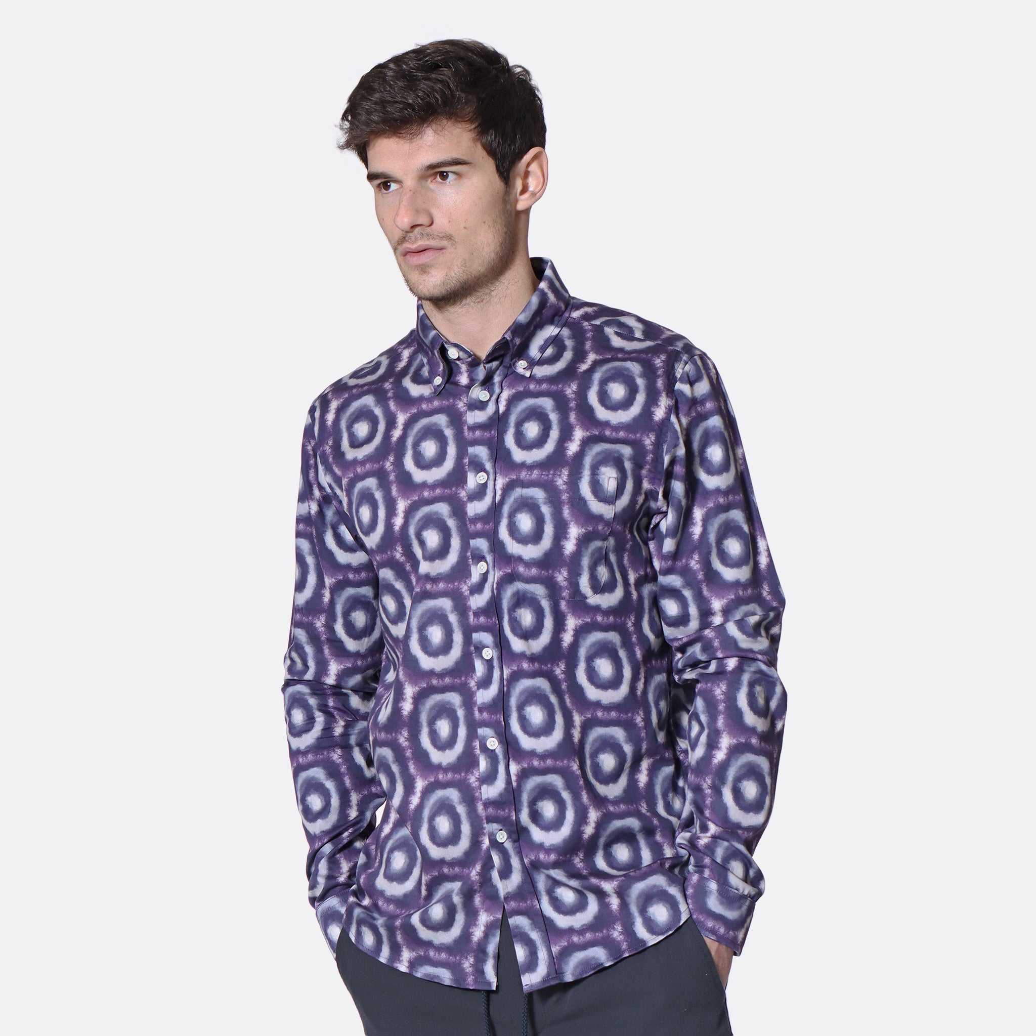 Chemise Hazey Nightshade L/S. Une chemise classique, élégante et décontractée, confectionnée à partir de coton satiné 100 % biologique et ornée d'un imprimé psychédélique intégral. Doté d'un col boutonné, d'une poche plaquée arrondie, d'un ourlet incurvé et de boutons en nacre véritable.