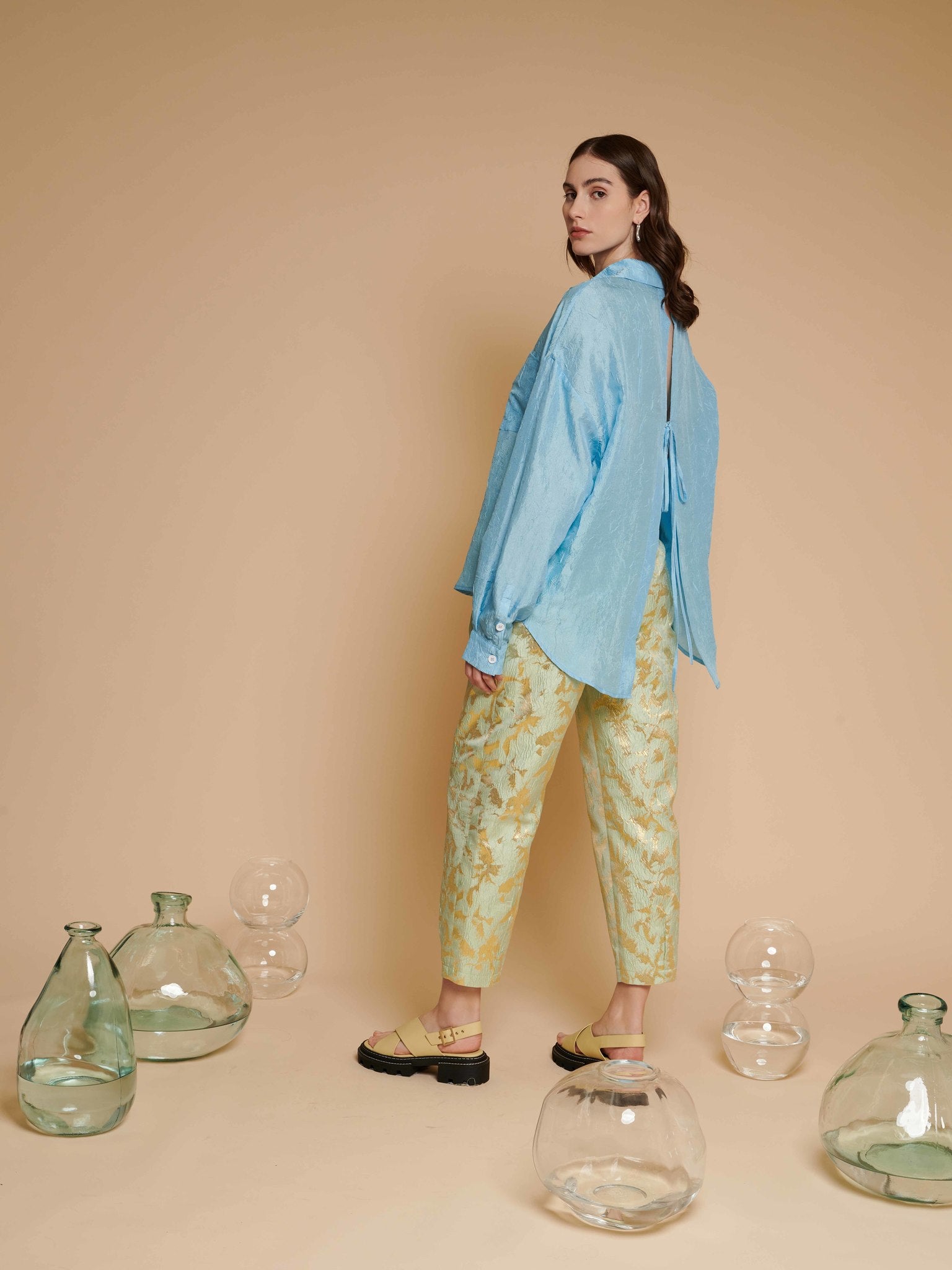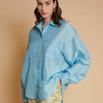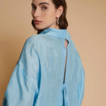 Avec une coupe décontractée et une belle teinte azur, la chemise surdimensionnée Logan est un refuge confortable pour votre garde-robe printanière - avec un dos ouvert avec une cravate réglable.