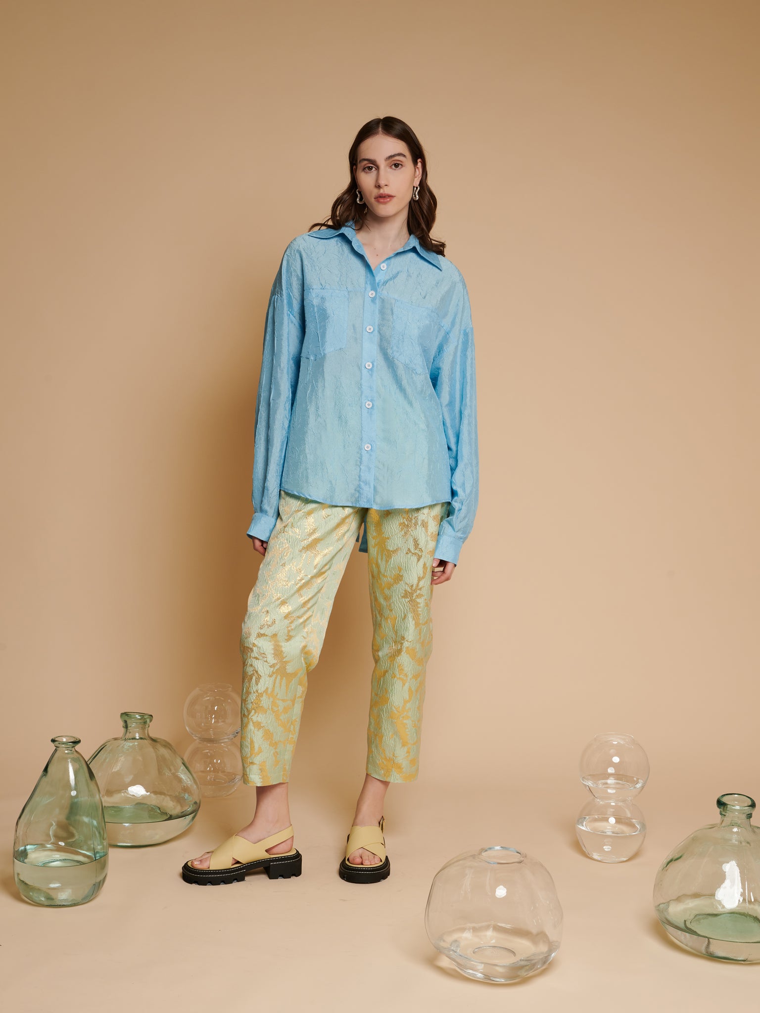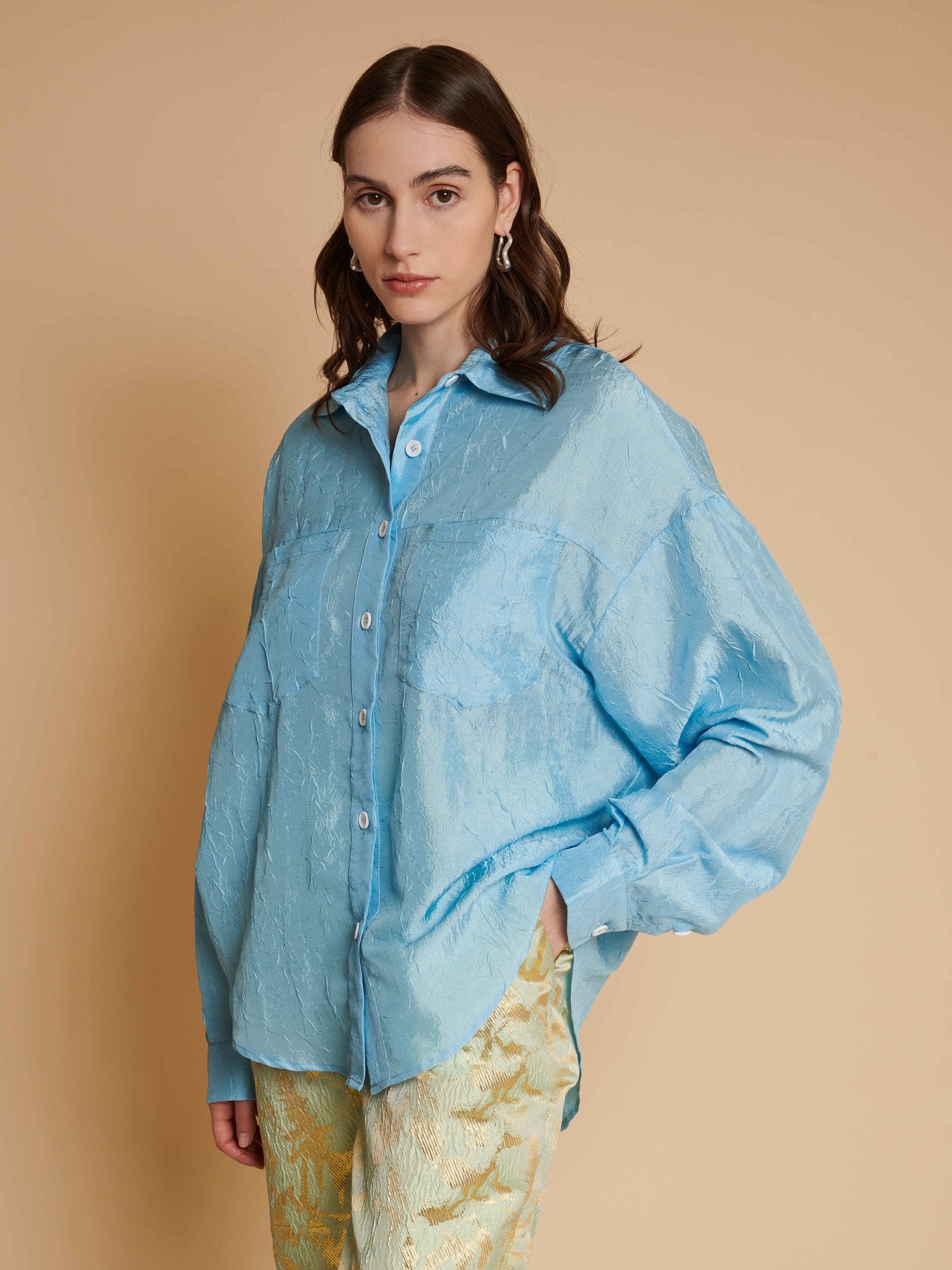Des eaux bleu clair, rappelant cette chemise tranquille à effet froissé, avec des ondulations de texture que vous aimez.