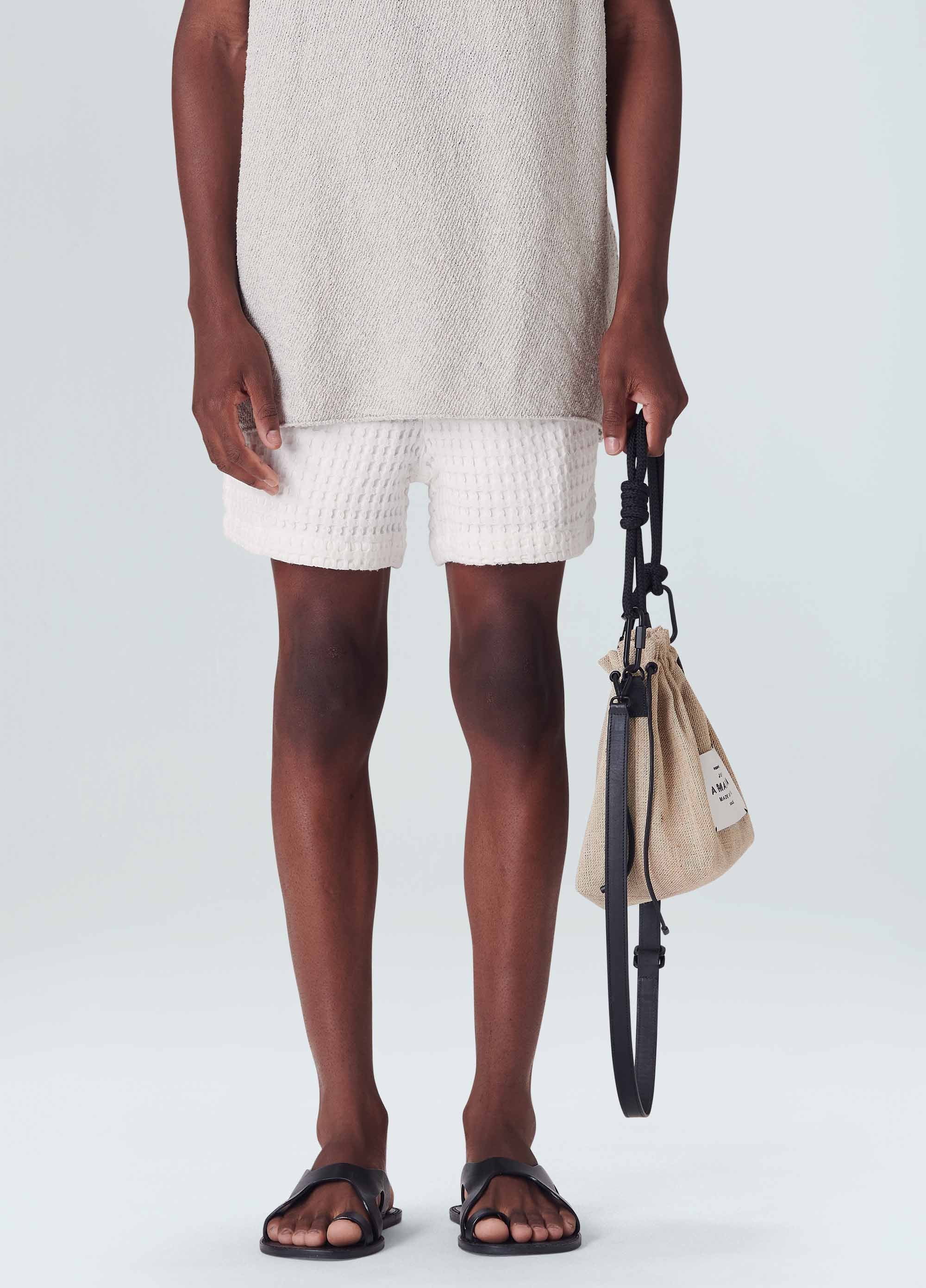 Adoptez le confort avec notre short texturé PJ pour hommes d'Osklen, conçu pour ceux qui apprécient un mélange de détente et de style. Ce short présente un motif texturé distinctif, donnant une touche moderne à une pièce de détente classique. La teinte blanc pur ajoute un look frais et épuré, parfait pour se détendre ou pour les sorties décontractées.
